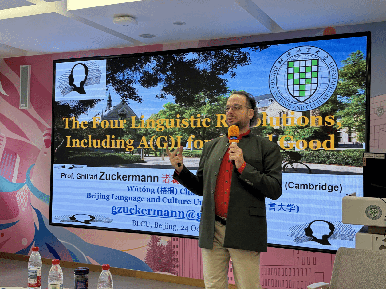 北语新闻网10月27日电(通讯员 韩霄 主父惠琳 摄影 主父惠琳)10月24日,由教育部语言文化国际传播联合研究院与发展规划与学科建设办公室联合主办的“梧桐学科建设讲坛”在我校图书馆日新讲堂举办。本次讲座特邀北京语言大学梧桐讲席教授、牛津与剑桥双博士诸葛漫(Ghil‘ad Zuckermann)担任主讲,以“The Four Linguistic Revolutions (including AI for Social Good)”为题,为在场师生带来一场跨越语言学、人工智能与社会公益的深刻对话。...